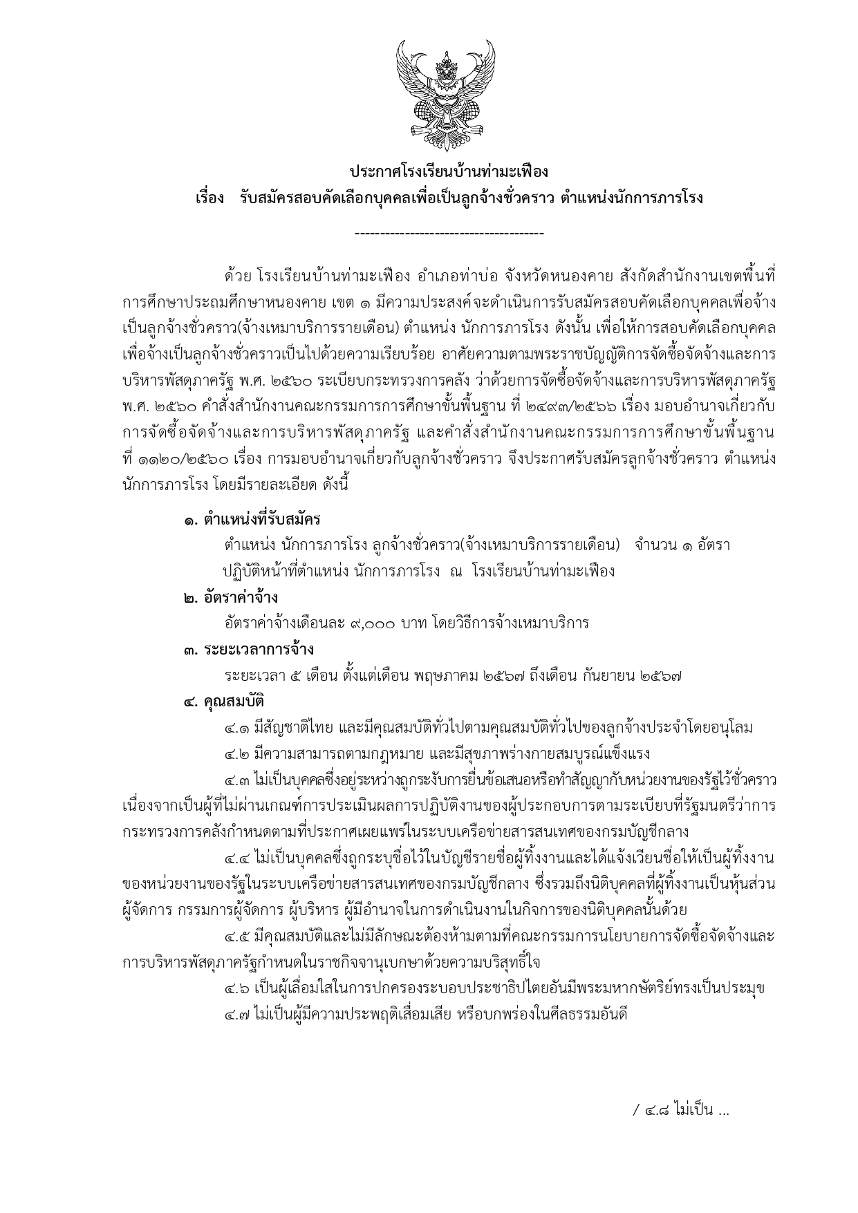 รับสมัครสอบคัดเลือกบุคคลเพื่อเป็นลูกจ้างชั่วคราว ตำแหน่งนักการภารโรง
