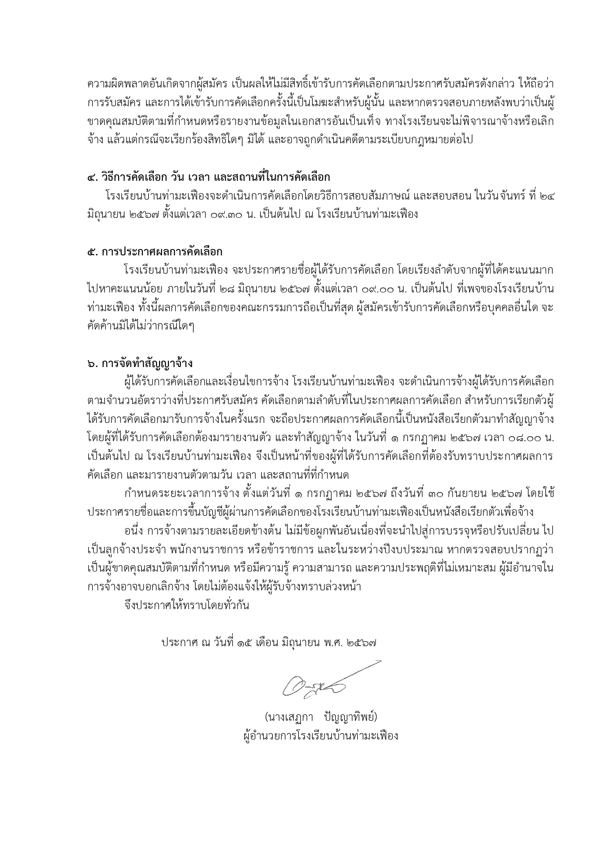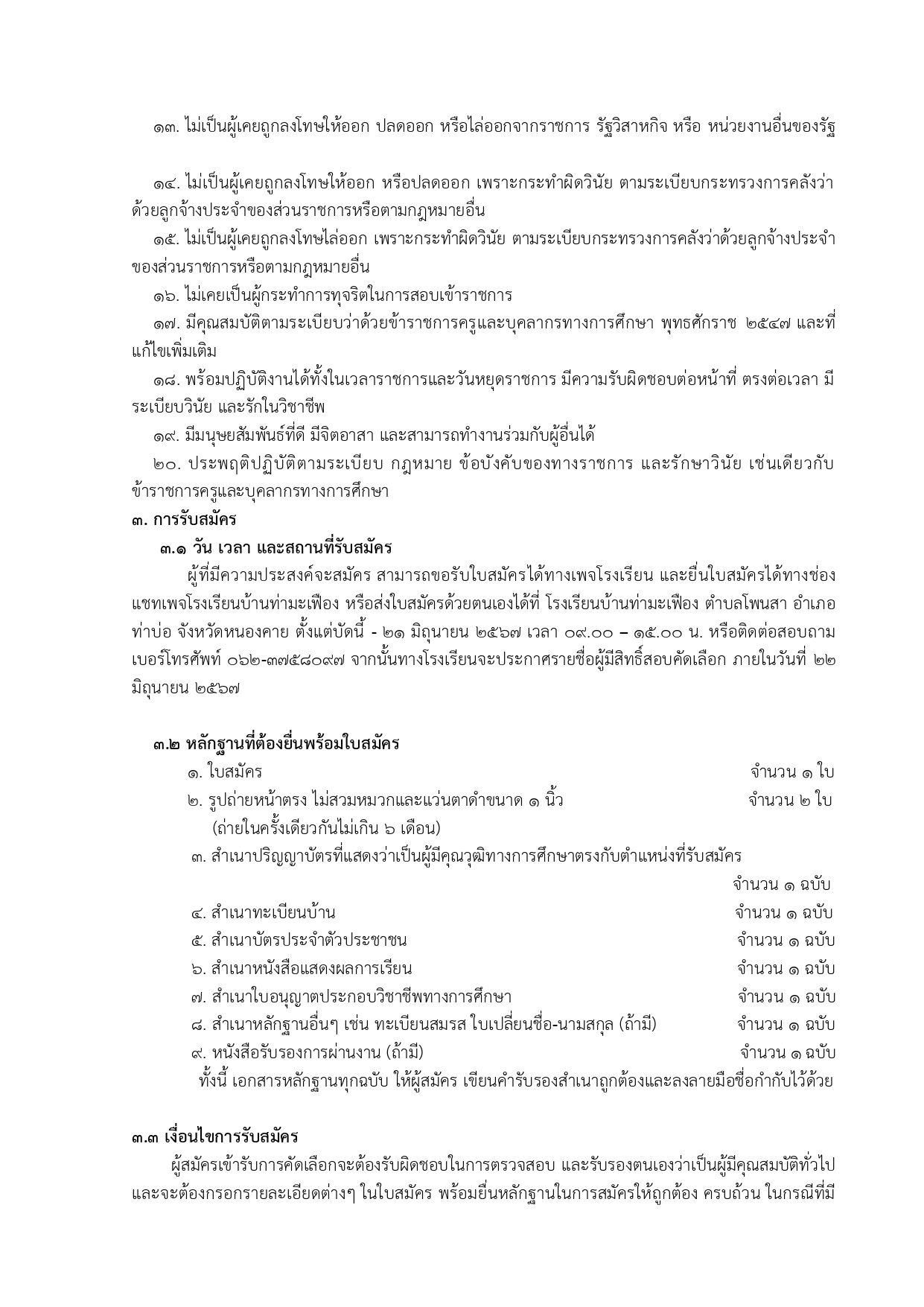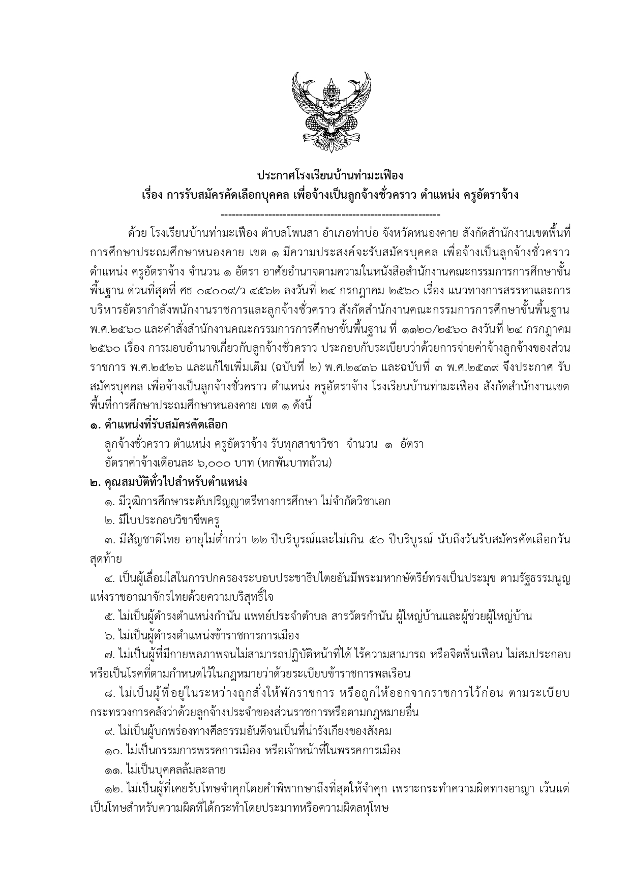 ประกาศโรงเรียนบ้านท่ามะเฟืองเรื่องรับสมัครครูอัตราจ้าง