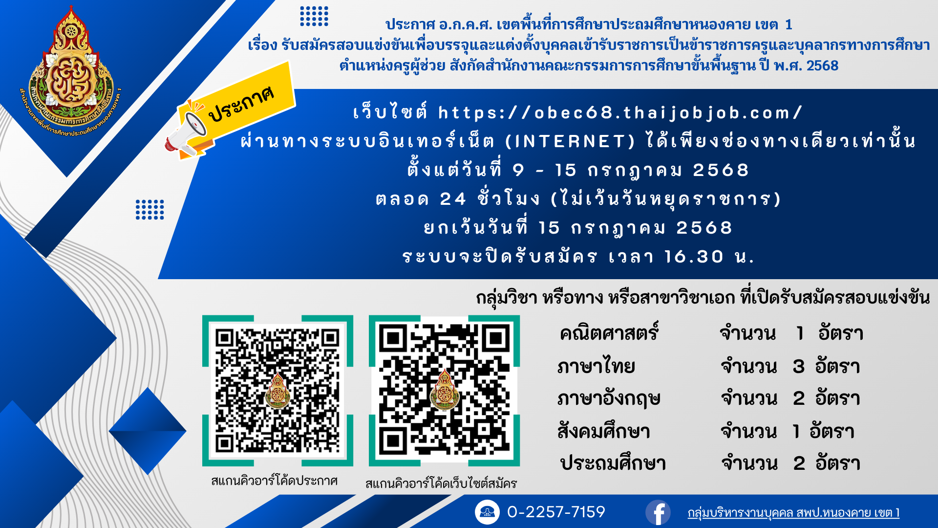รับสมัครสอบแข่งขัน ตำแหน่งครูผู้ช่วย สพป.นค.1